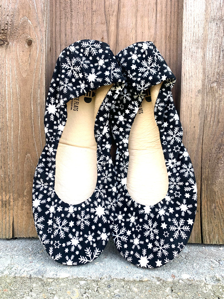Women's Black Ballet Flat with White Snowflakes